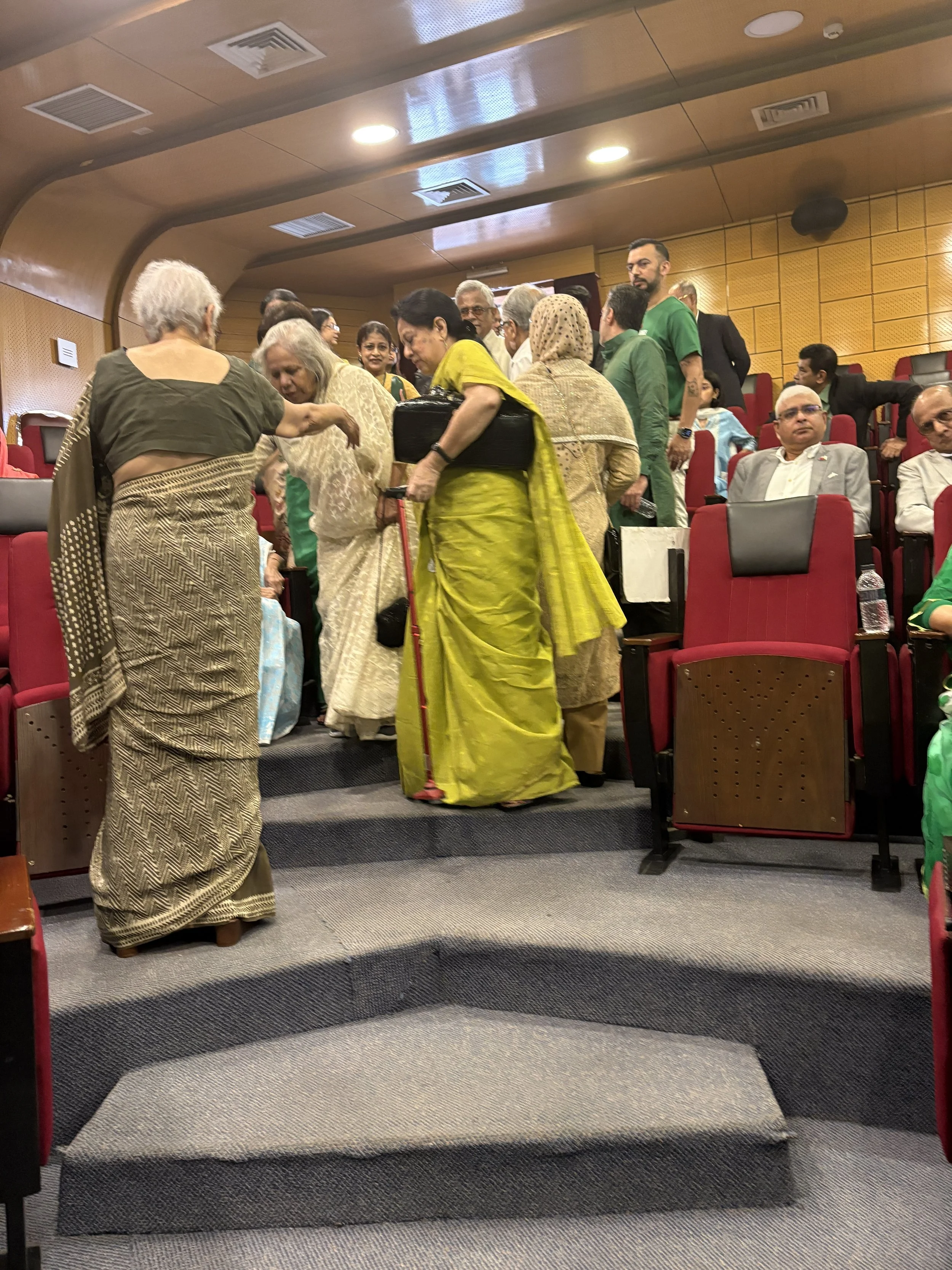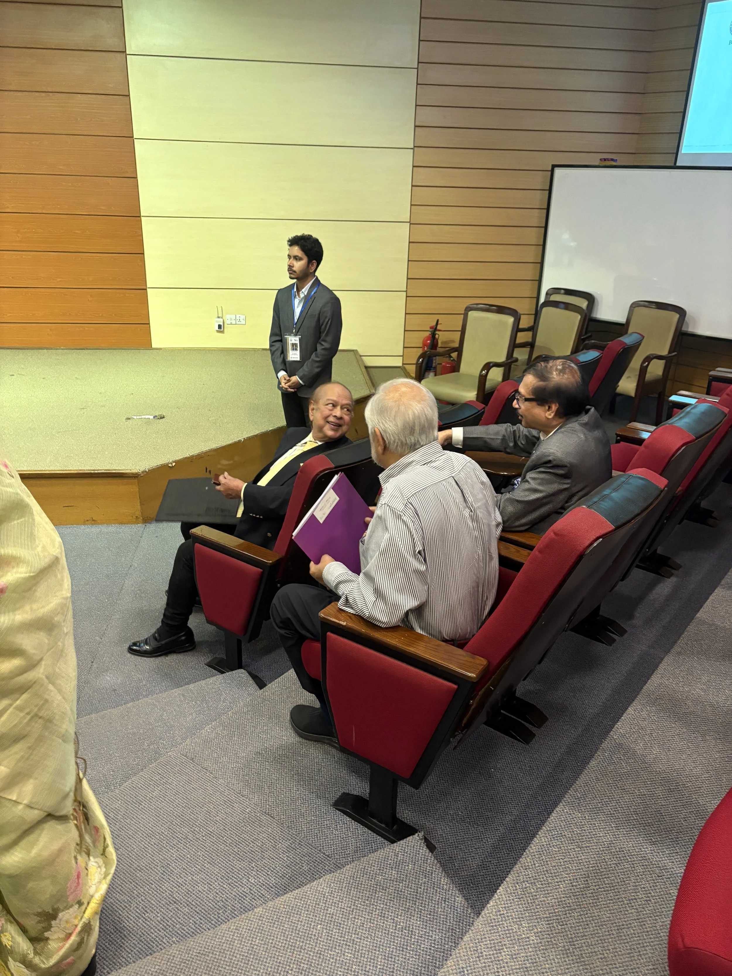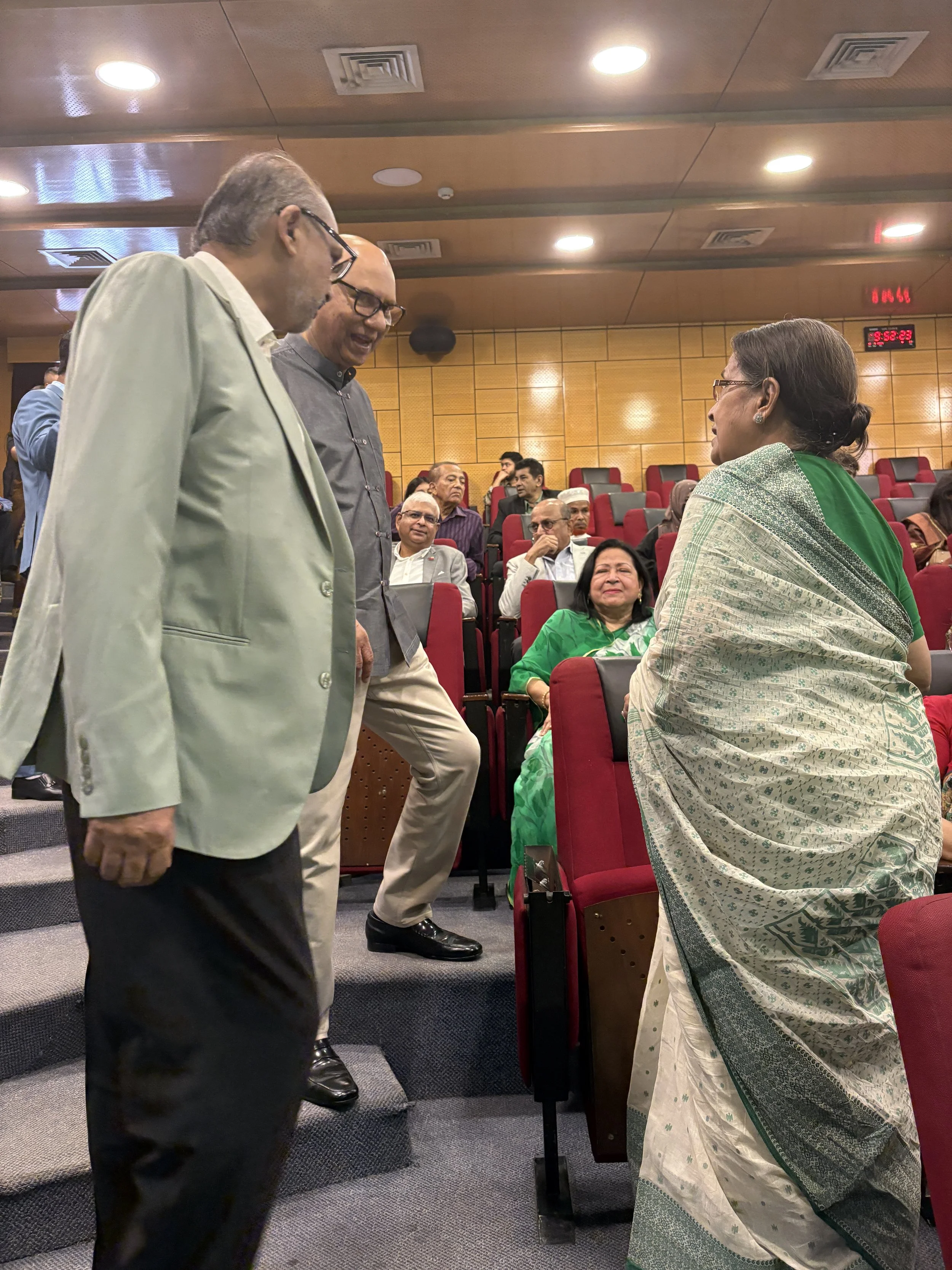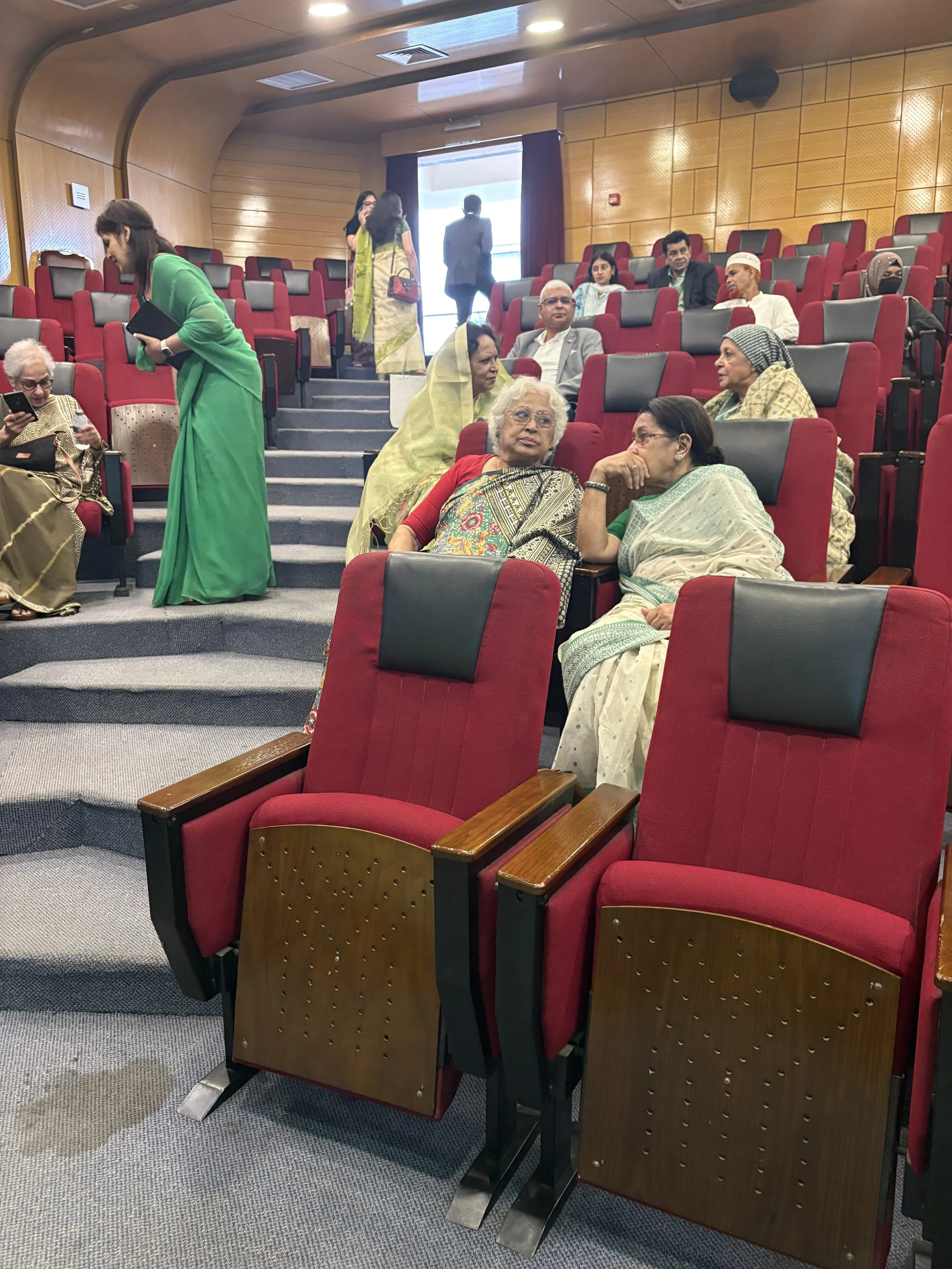 A candid moment with speakers, conference organizers, and family members capturing the energy and excitement before the start of the Empowering Bangladesh conference. The full auditorium, packed with attendees, press, and supporters, reflected the powerful sense of community and commitment to shaping a brighter future for Bangladesh.